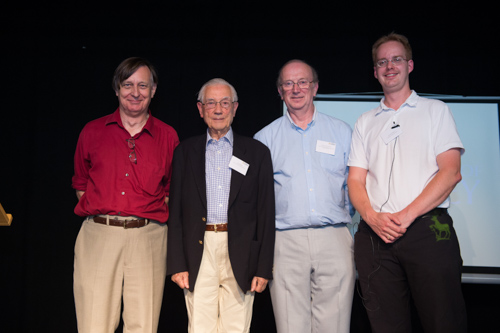 All four of the Tonmeister course programme directors, from left to right: David Pickett (1979-1983), John Borwick (1971-1979 & 1983-1984), Dave Fisher (1984-2009), Russell Mason (2009- ).