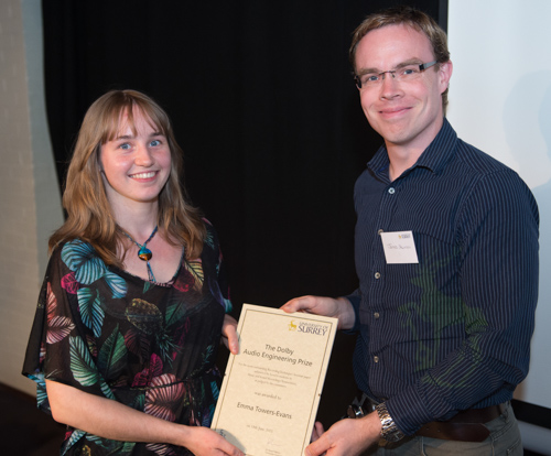 The Dolby Audio Engineering Prize for the most outstanding recording techniques seminar submission, was presented to Emma Towers-Evans by James Shannon from Dolby.