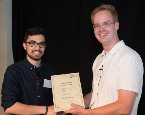 The AMS Neve Portfolio Prize for the most outstanding portfolio of recordings, was presented to Thomas Aston.