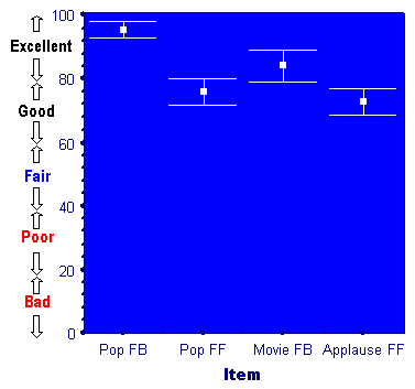In contrast to previous cases, limitation of LF content in the centre channel had an insignificant effect on audio quality for most items. Fig. 4 shows that switching off the LFE channel had a greater effect on quality than switching off the LFE channel in conjunction with band-limitation of the centre channel. For example, for the "Applause F-F" switching off the LFE channel deteriorated the quality from "Excellent" (80-100) to "Good" (60-80). However, switching off the LFE channel and high-pass filtration of the centre channel did not cause any further degradation of quality (insignificant differences between means).